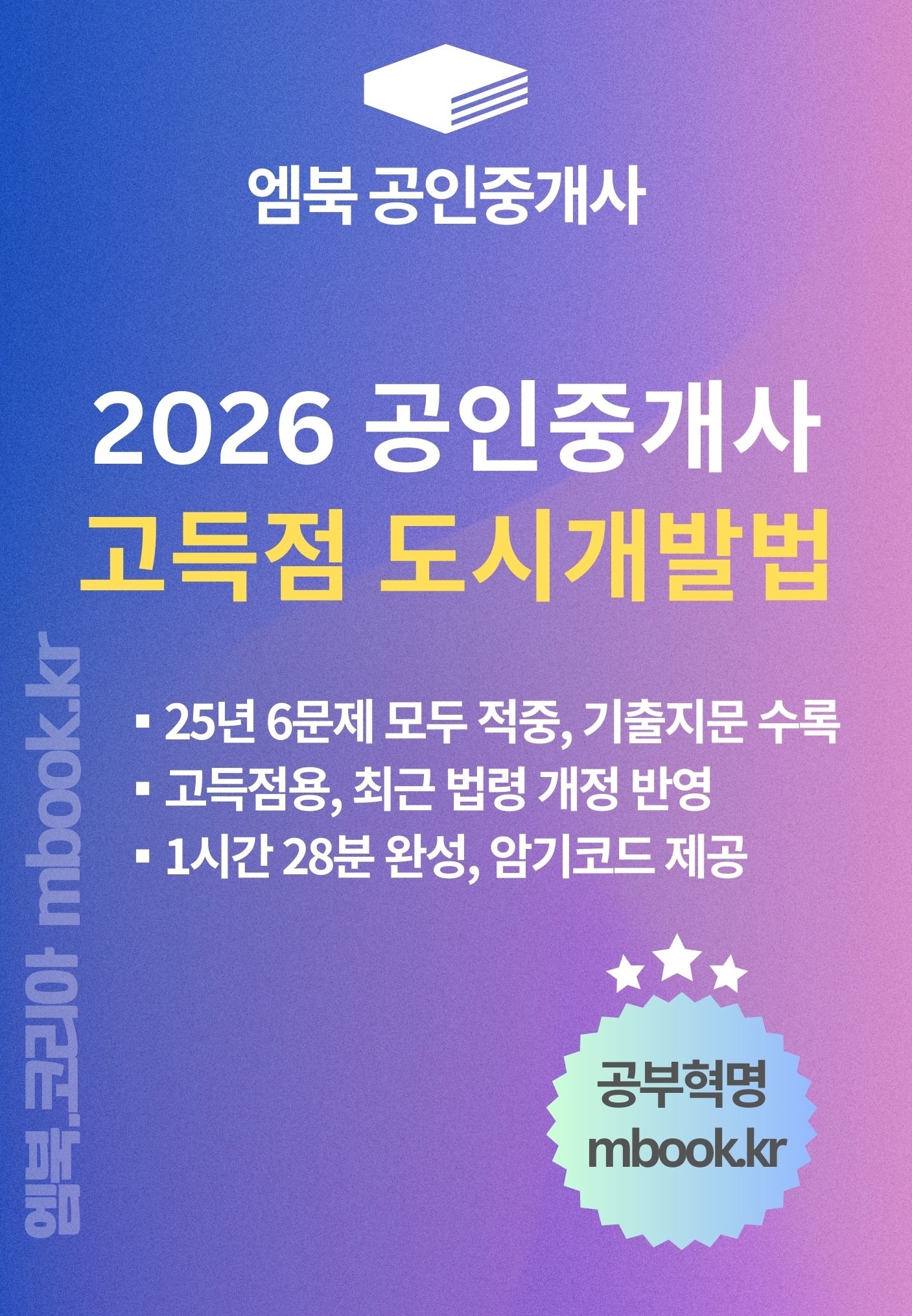 엠북 부동산공법 시리즈는 역대 공인중개사 부동산공법 시험 중 가장 어려웠다고 평가받는 2025년 시험에서 40문제 중 38문제(95%)를 적중했습니다.
